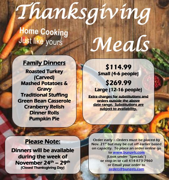 PLEASE NOTE: THE THANKSGIVING MEAL IS ONLY AVAILABLE FOR PICK-UP NOVEMBER 24th THRU NOVEMBER 29th